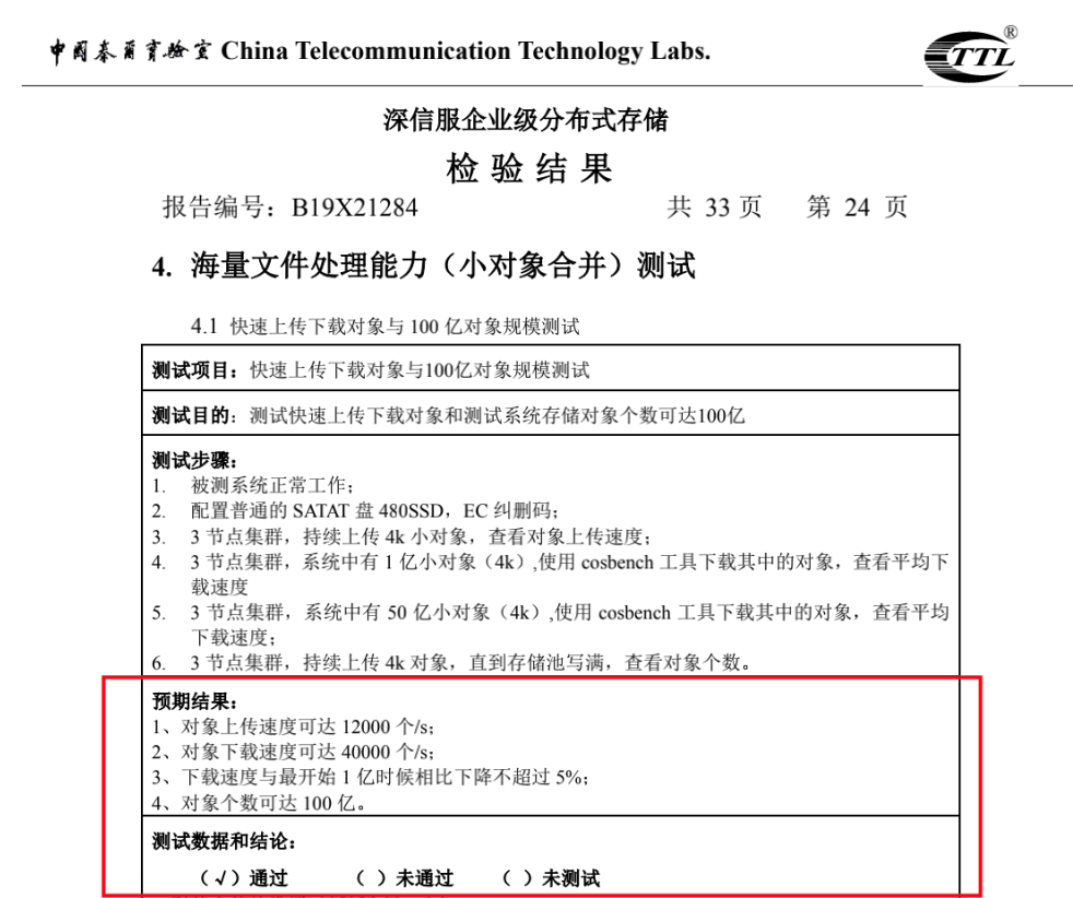 EDS對象存儲在3節點混合盤配置下可以承載100億個小對象數據,且性能下降不超過5%。而開源CEPH在對象規模實測達到3億時,性能下降已超過60%。