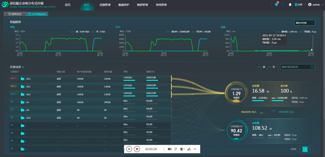 使用3節點混合盤配置的EDS集群,EDS文件存儲可提供6GB/s的讀寫吞吐能力。