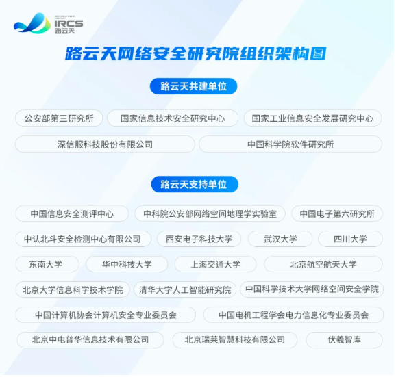 路云天獲“產(chǎn)、學(xué)、研、用、管”各界大力支持,支持單位包括中國信息安全測評中心、中科院公安部網(wǎng)絡(luò)空間地理學(xué)實(shí)驗(yàn)室、中國電子第六研究所、中認(rèn)北斗安全檢測中心有限公司、西安電子科技大學(xué)、武漢大學(xué)、四川大學(xué)、東南大學(xué)、華中科技大學(xué)、上海交通大學(xué)、北京航空航天大學(xué)、北京大學(xué)信息科學(xué)技術(shù)學(xué)院、清華大學(xué)人工智能研究院、中國科學(xué)技術(shù)大學(xué)網(wǎng)絡(luò)空間安全學(xué)院、中國計(jì)算機(jī)協(xié)會計(jì)算機(jī)安全專業(yè)委員會、中國電機(jī)工程學(xué)會電力信息化專業(yè)委員會、北京中電普華信息技術(shù)有限公司、北京瑞萊智慧科技有限公司、伏羲智庫。