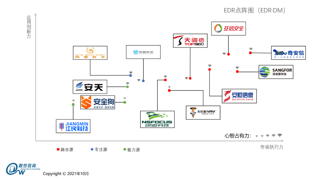 ? 本次EDR安全能力點(diǎn)陣圖將廠商分為三種: