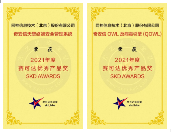 1月19日,國際知名第三方網絡安全檢測服務機構——賽可達實驗室發布2021年度賽可達產品獎(SKD AWARDS)獲獎名單,來自11家網絡安全企業的24款網絡安全產品入選此名單。其中,奇安信天擎終端安全管理系統、奇安信OWL反病毒引擎憑借強大的技術創新能力,從國內外眾多的產品中脫穎而出,斬獲賽可達實驗室“企業終端安全”和“殺毒引擎”兩項大獎。