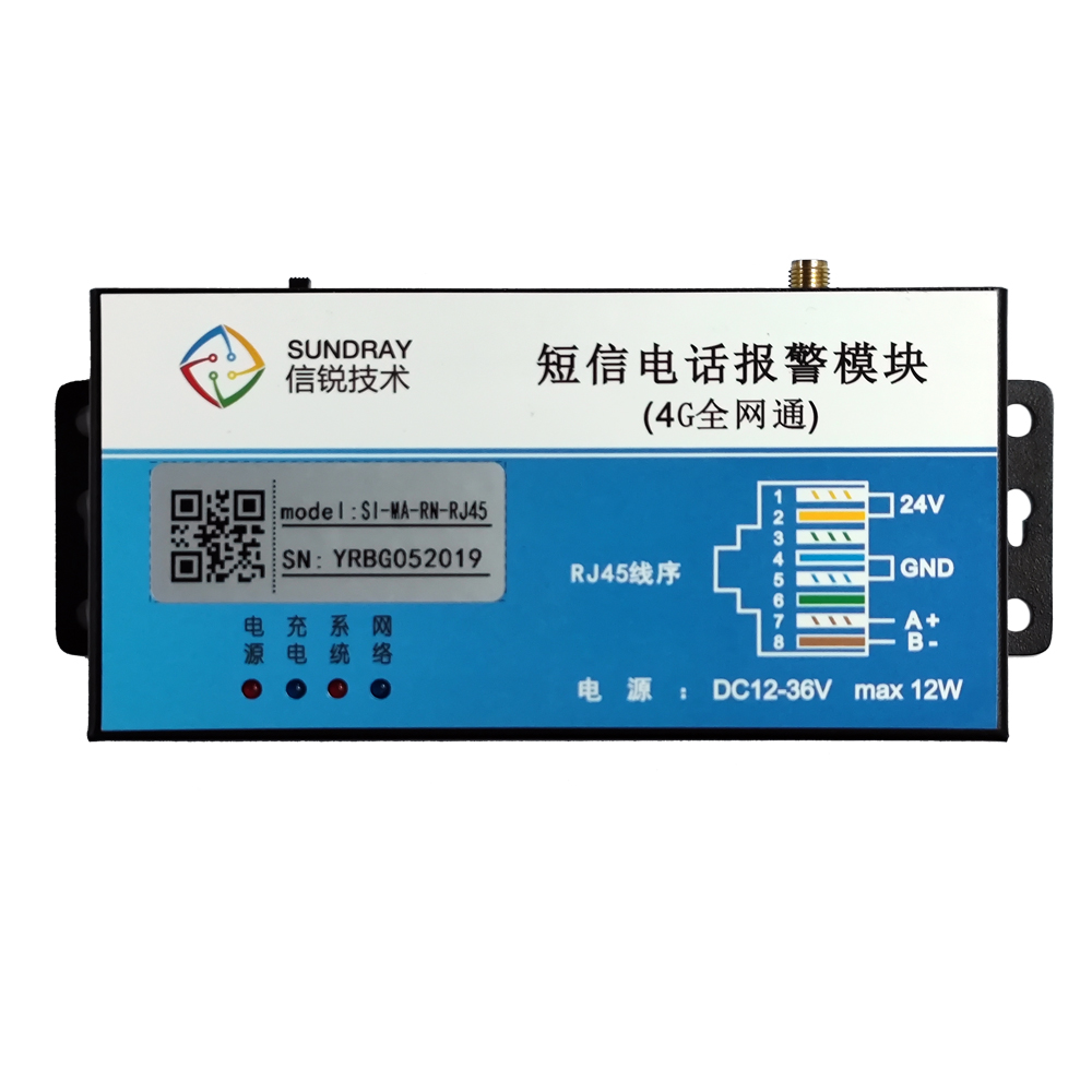 SI-MA-RN-RJ45是信銳自主開發(fā)的4G短信電話告警模塊,采用RJ45非標(biāo)準(zhǔn)網(wǎng)絡(luò)接口,用于給設(shè)備輸入電源以及實(shí)現(xiàn)RS485串行通信;RS485電路內(nèi)置15KV ESD保護(hù),采用自定義通信協(xié)議。